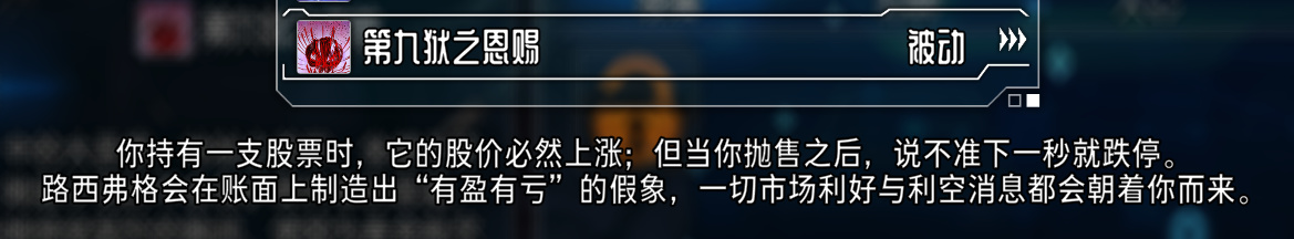 在好感度刷高之后就能解锁路西弗格真正的权能,简单讲就是一买就涨,一卖就跌。毕竟是管钱的恶魔。