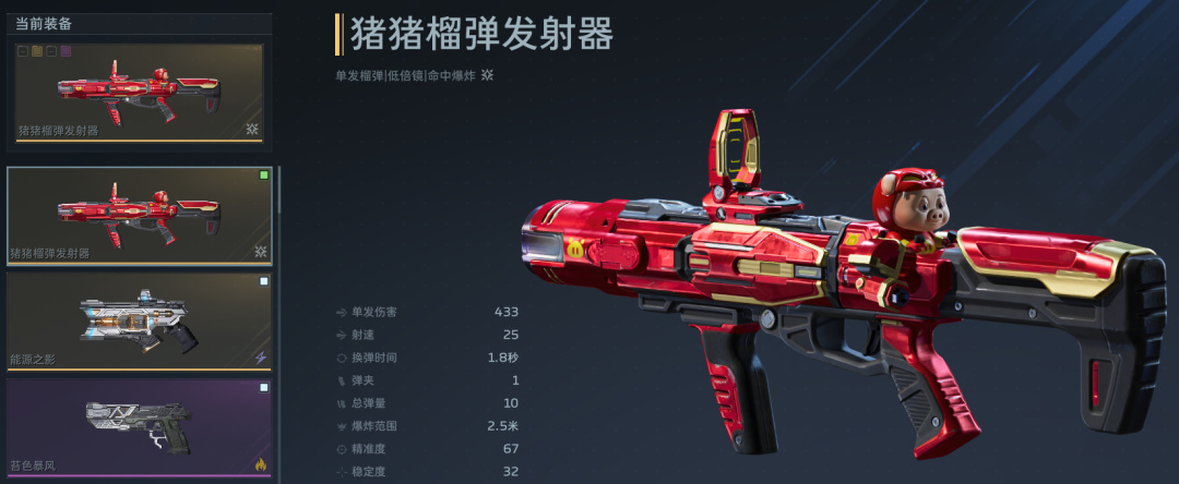 小提示:猪猪枪是收割者换皮,所以是副武器,主武器里是找不到的。