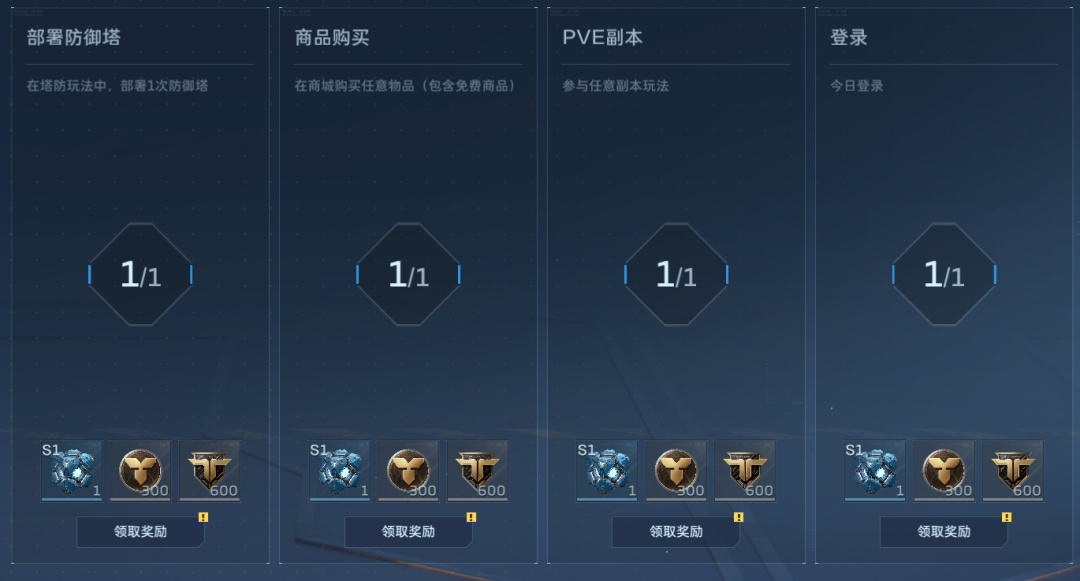 这样就能完成【部署一次防御塔】和【参与任意PVE玩法】,之后商店买个复活币,外加每日登录,5分钟就把日活打完可以下线了。