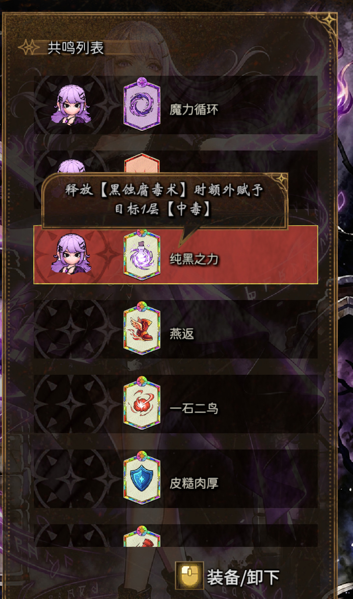 但这些共鸣随着序章角色离队(或死亡),在背包里不能用,直到游戏结束,也没找到解锁的方式。成纪念品了。