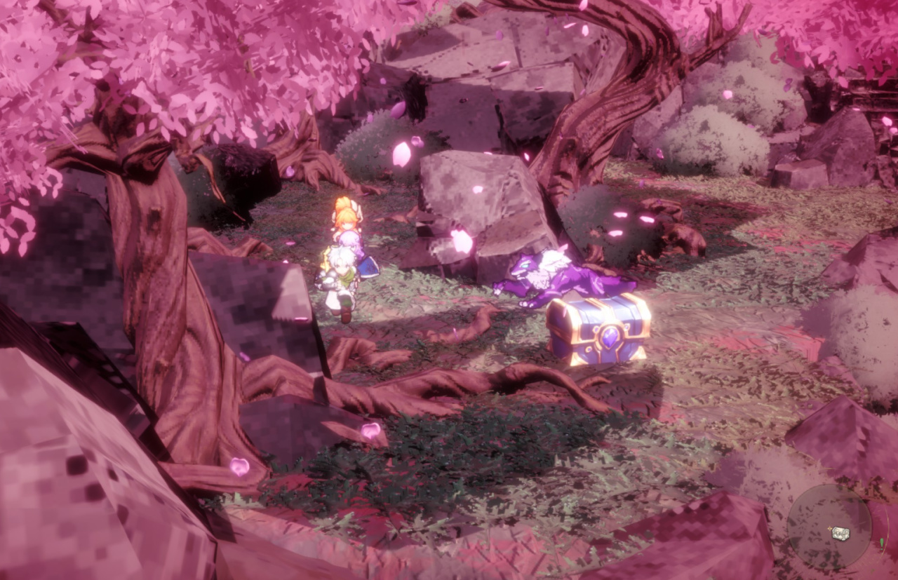 你看,在第一章大森林里四处跑得是这种狼,第二章樱花林里跑得还是这种狼。游戏的宝箱开出的内容,多是锻造、可合成物品。没有什么“发现极品宝物”的感觉。