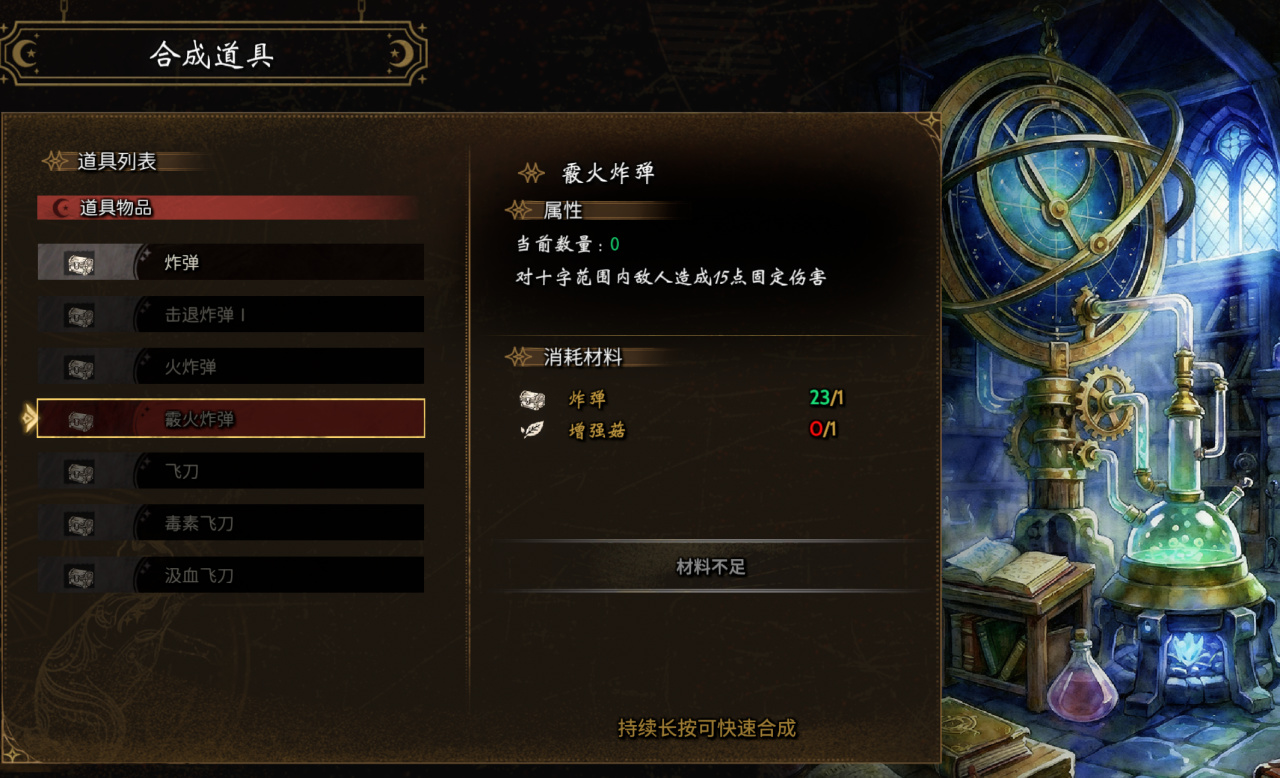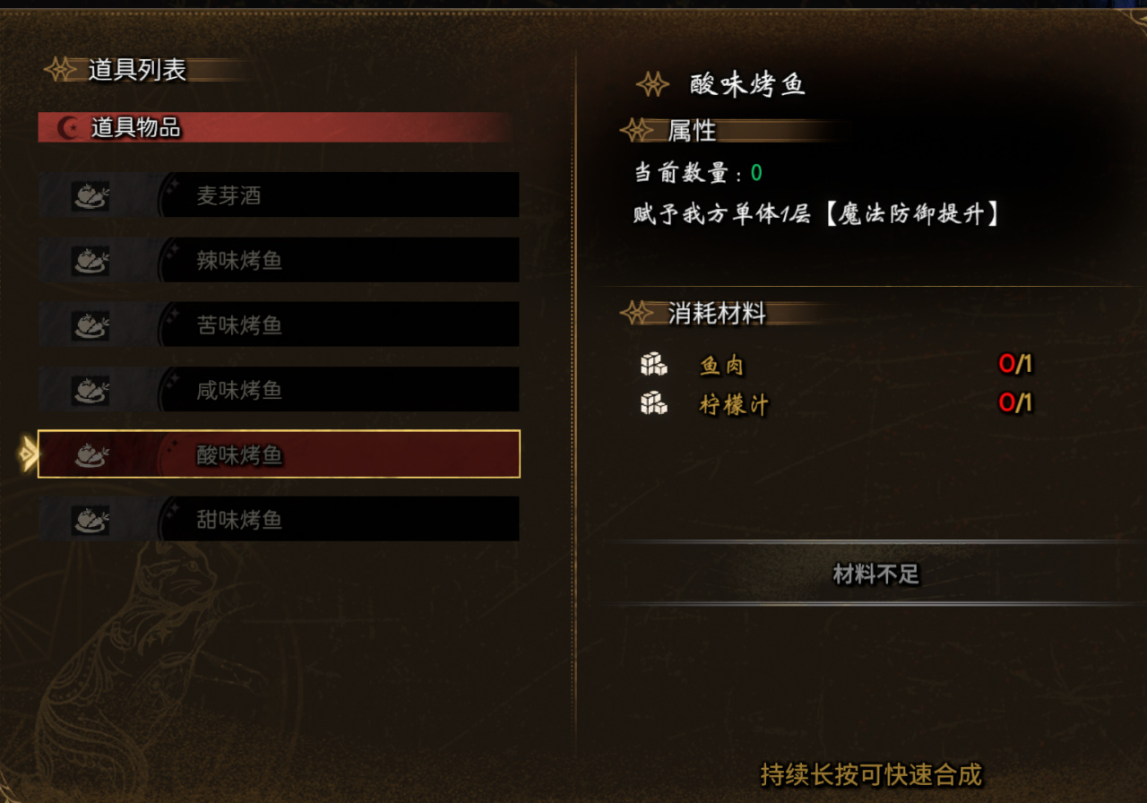至于这些合成内容所需要的材料……见到的宝箱我都有捡,路上的草药我也有摘,支线任务也全做了。为什么材料会缺成这样呢?