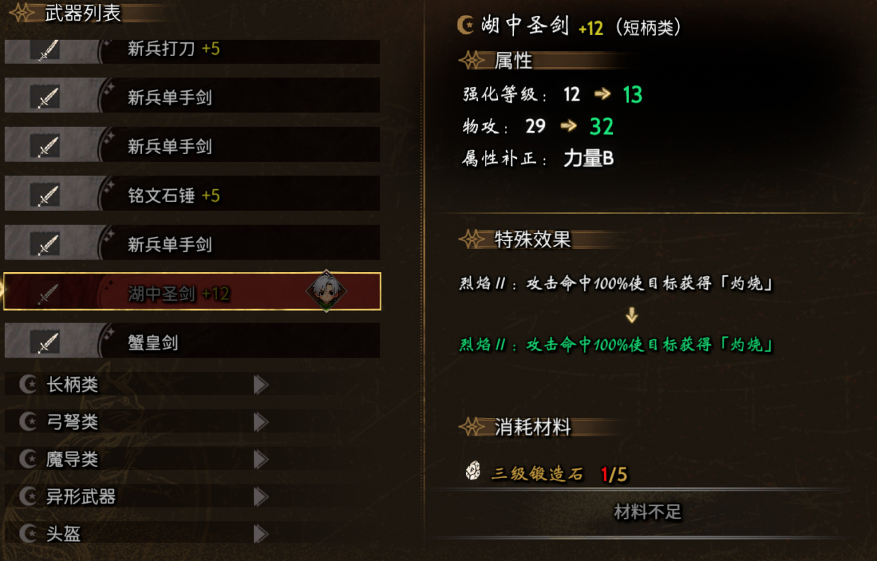主要作用,是给不同的装备提升等级,游戏里的装备走得是“类魂”加成,根据角色的属性加成提供额外的攻击力。而不同武器,会附带不同的效果。目前游戏中,除了剑类的武器较多,其余三名主角的武器,仅仅有商店购买的一种。