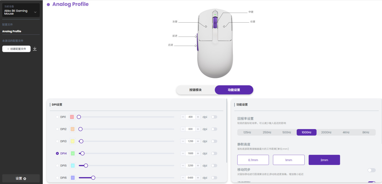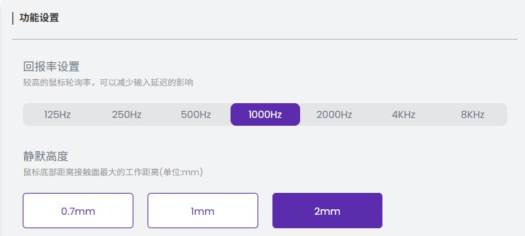 问题就出在这个“静默高度”上,因为定位是电竞级鼠标,所以灵动V9初始的静默高度是0.7mm,正常人使用时基本不会抬起鼠标,但是打游戏的时候反应就会明显加大,对于普通用户,调到2mm就很舒服了。