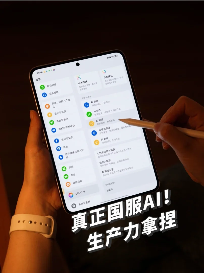 手写笔的体验差别很明显。OPPO的毛毡软笔尖写起来像在纸上,延迟低、压感细腻,还能自动美化字体,做手帐、记笔记质感更好。息屏点一下就能速记,突然有想法不用解锁找 APP,随手记录很省心。AI 随心圈很实用,圈文字提取、圈草图生图、笔记转脑图,整理资料效率很高。自由多窗可以一边听播客一边记笔记,不用来回切换,碎片化时间用着更顺手。
