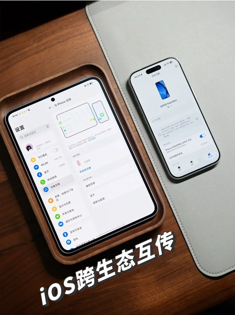 作为 iPhone 用户,最惊喜的是 iOS 跨生态互传。装个 OPPO 互联 APP,照片、文件传输很顺畅,有不输 iOS 设备的便捷。iPhone 通信共享也很贴心,平板能直接看来电、信息,出门不用总盯着手机。