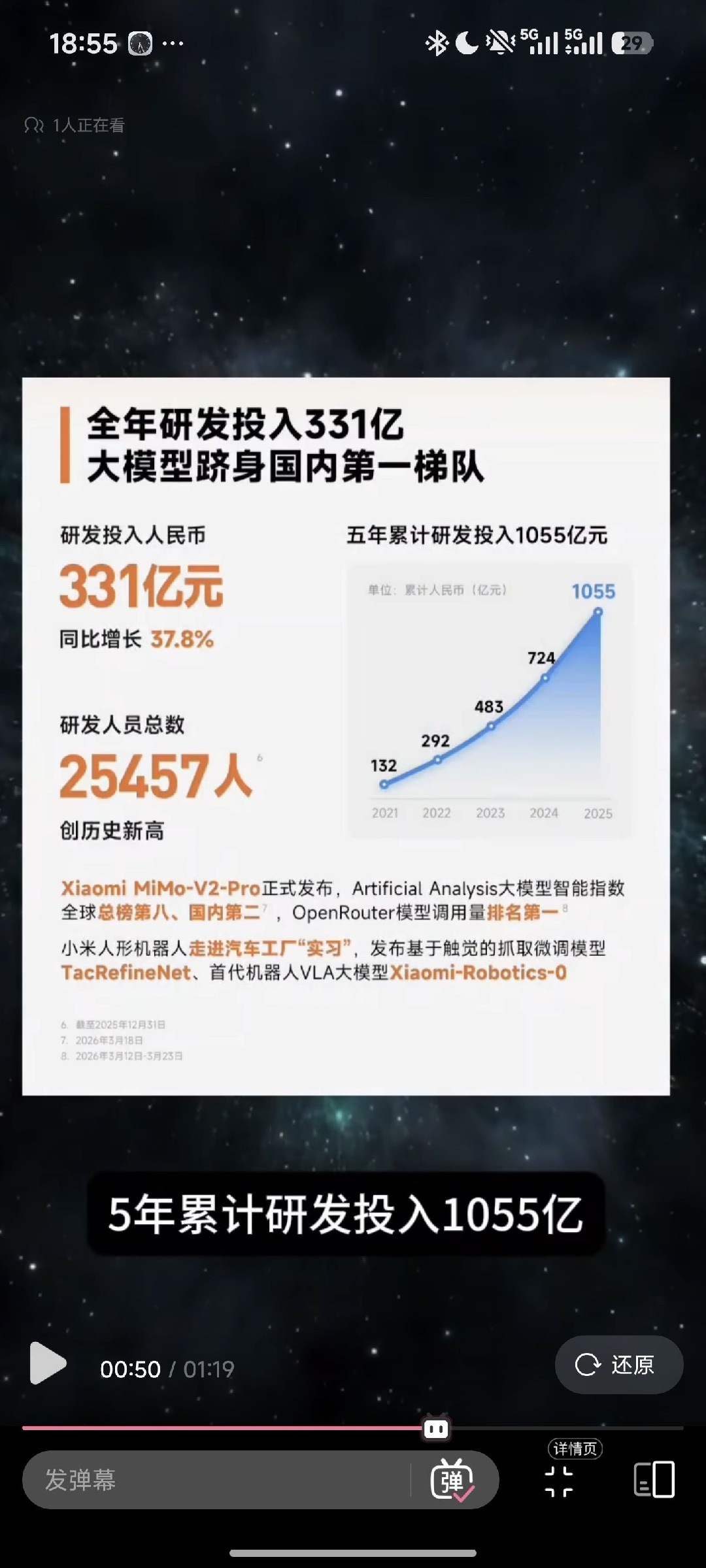 雷军还在节目中提到,一般车企造一辆车,总计投入300人至400人以及10亿至20亿元的经费,而小米则是“十倍以上的投入”。