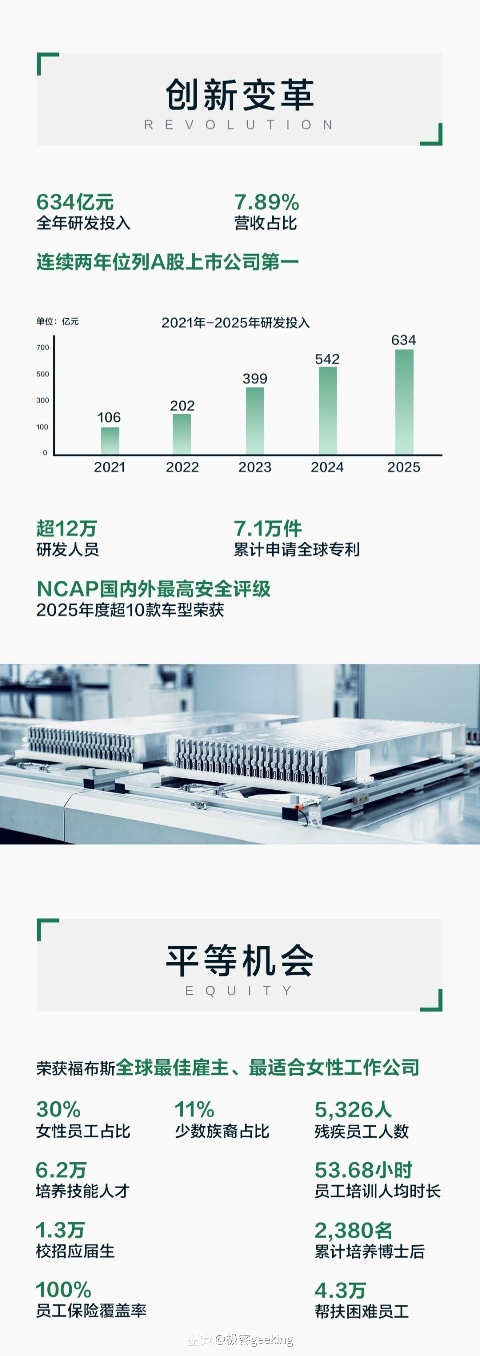 研发投入的差距,成为头部车企竞争力分化的“胜负手”。2025年,比亚迪研发投入达634亿元,同比增长17%