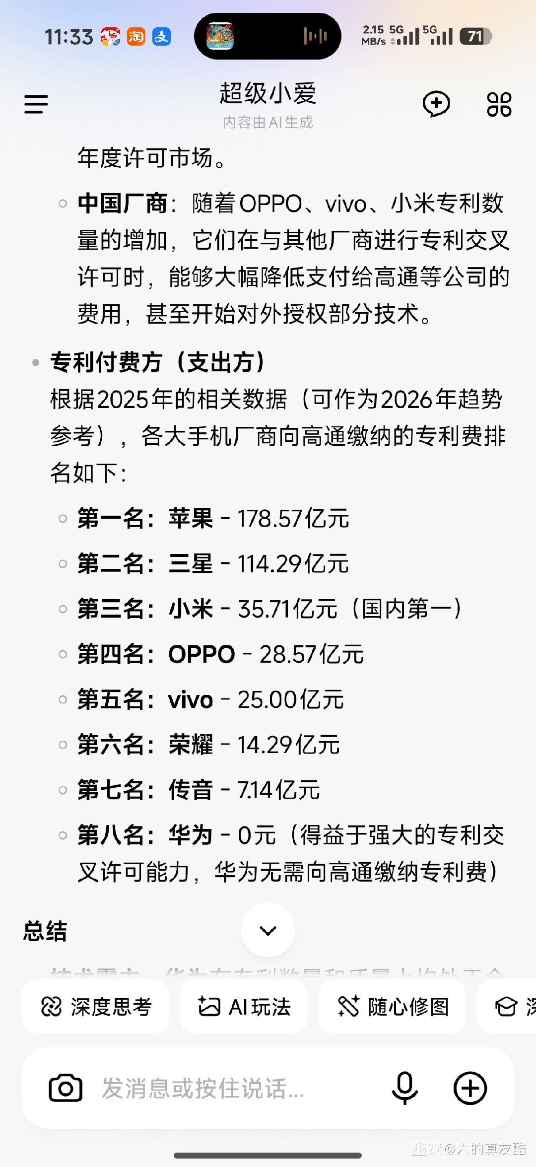 没把腾讯那种互联网大厂算进去,但人家也不做硬件啊。做硬件的科技公司现在比小米研发投入高的真就只有华为和比亚迪了,第三就小米了。奇瑞,vivo,吉利,OPPO啥的每年研发投入就200亿左右