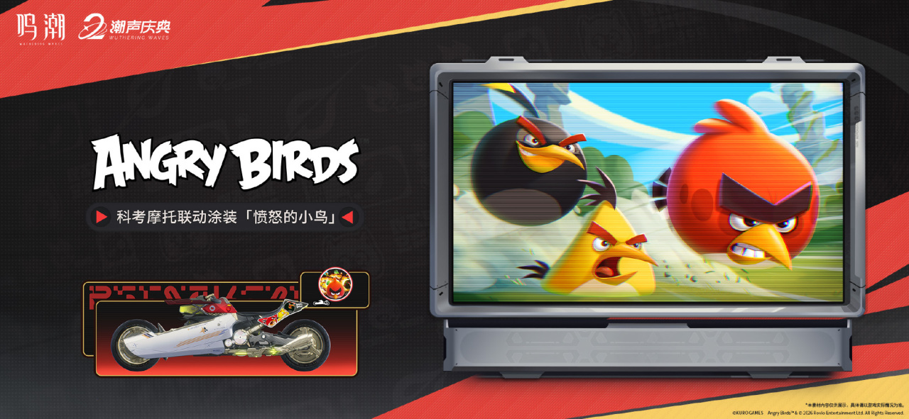 《鸣潮》×《愤怒的小鸟》联动涂装决定!参与活动异界联速,获得科考摩托联动涂装「愤怒的小鸟」等奖励