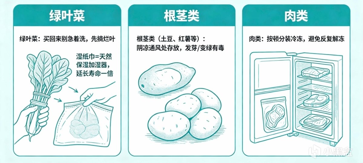 土豆、红薯等放在阴凉通风处,别放冰箱。如果发芽或变绿了,别吃,有毒。