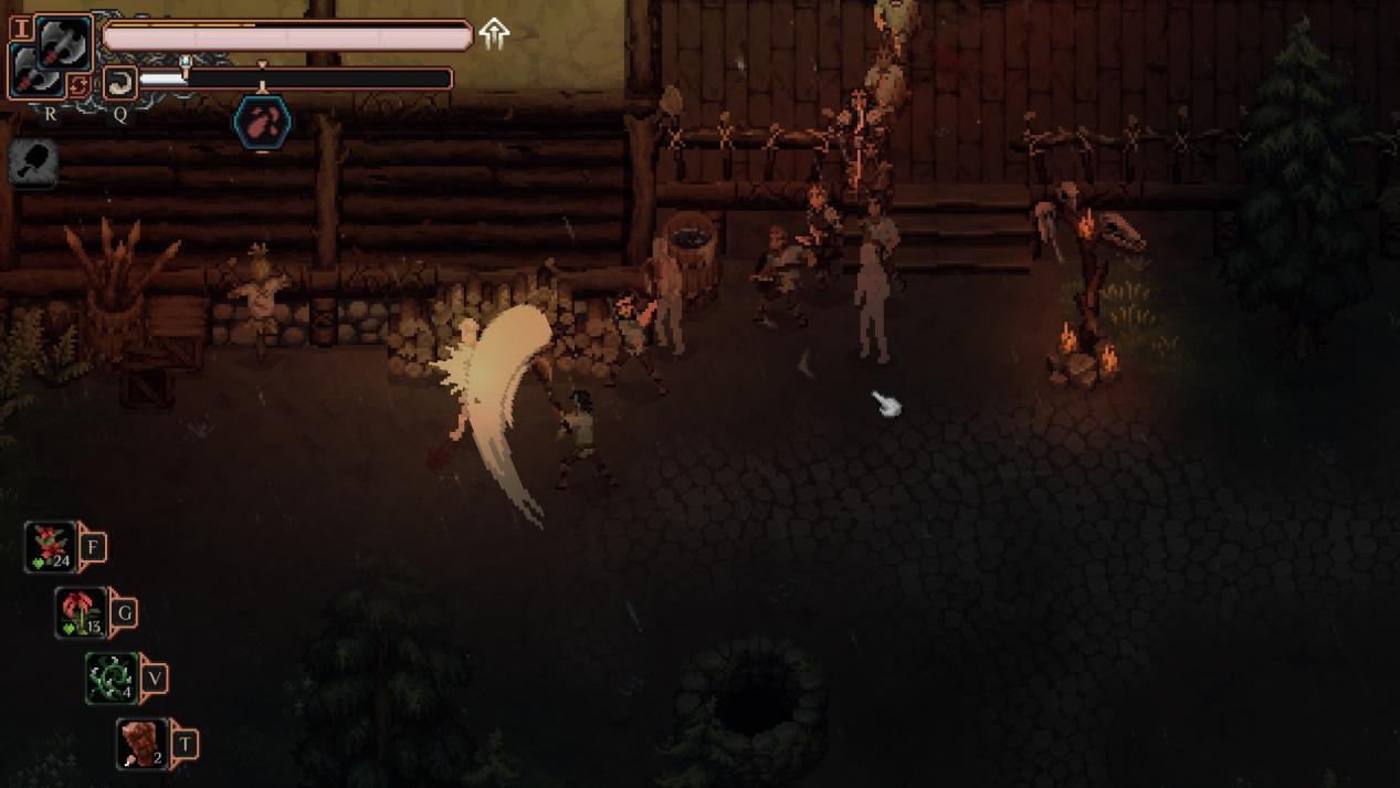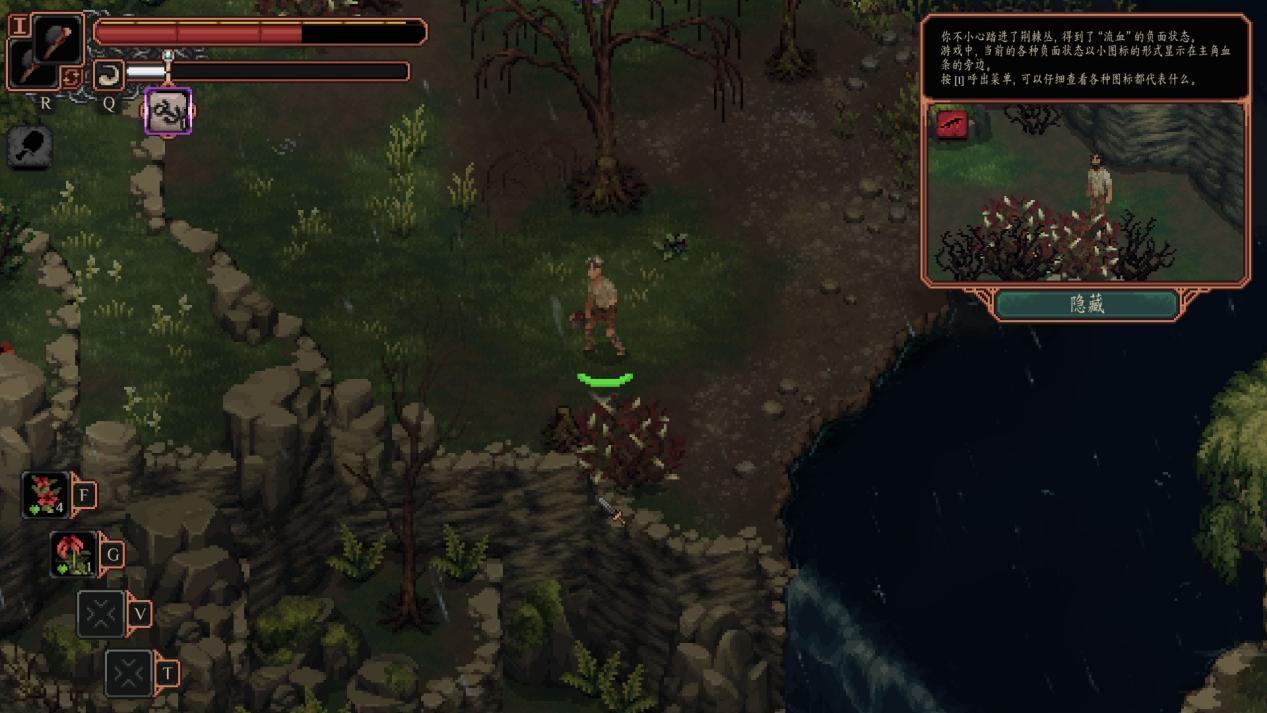 无论是玩家还是敌人,在路过荆棘丛的时候都会都会得到流血的状态,而流血层数越高,每秒钟掉的血量就越高,玩家完全可以通过走位将敌人引诱到荆棘丛旁边,为其附上负面的流血buff,甚至还可以将野外的野兽/怪物引到附近的土匪营地,让他们狗咬狗,一嘴毛,自己坐享渔翁之利,甚至还可以利用自己打造的陷阱、飞刀等道具,轻轻松松拿下敌人,这就是外乡人的惊世智慧。