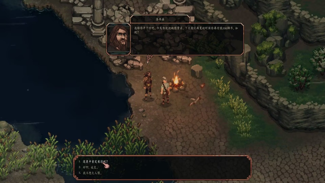 但是当我们离开伐木营地往西边去的时候,在河边遇到的一位NPC会给我们一张地图。虽然我们给不起地图的钱,但是可以通过赊账!(估计这是制作组的一个善意)
