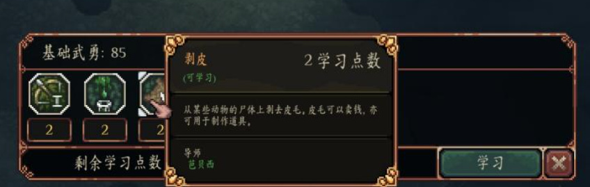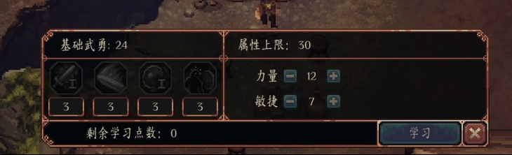 击败敌人和完成任务都会获得经验值,攒满后获得升级。除了属性提高之外,还会奖励学习点数:学习点数可以拿去NPC那提高各方面属性,还可以跟各位导师学习独特的主动/被动技能,不过学习技能的话,对于属性是有所要求的,因此前期建议还是先点基础属性的升级。
